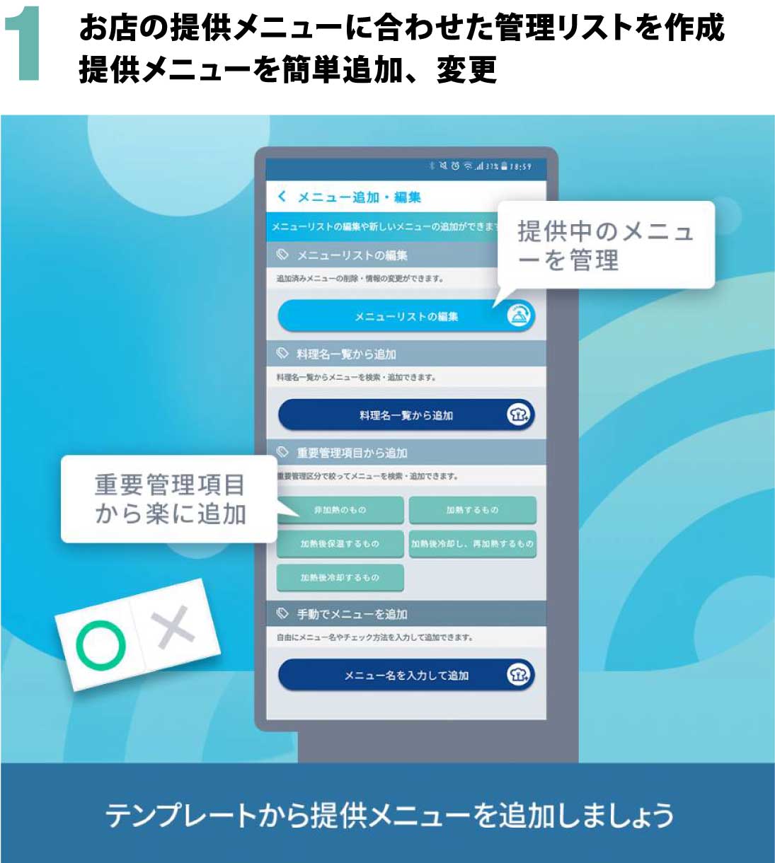 簡単にハサップ管理がスタートできます。