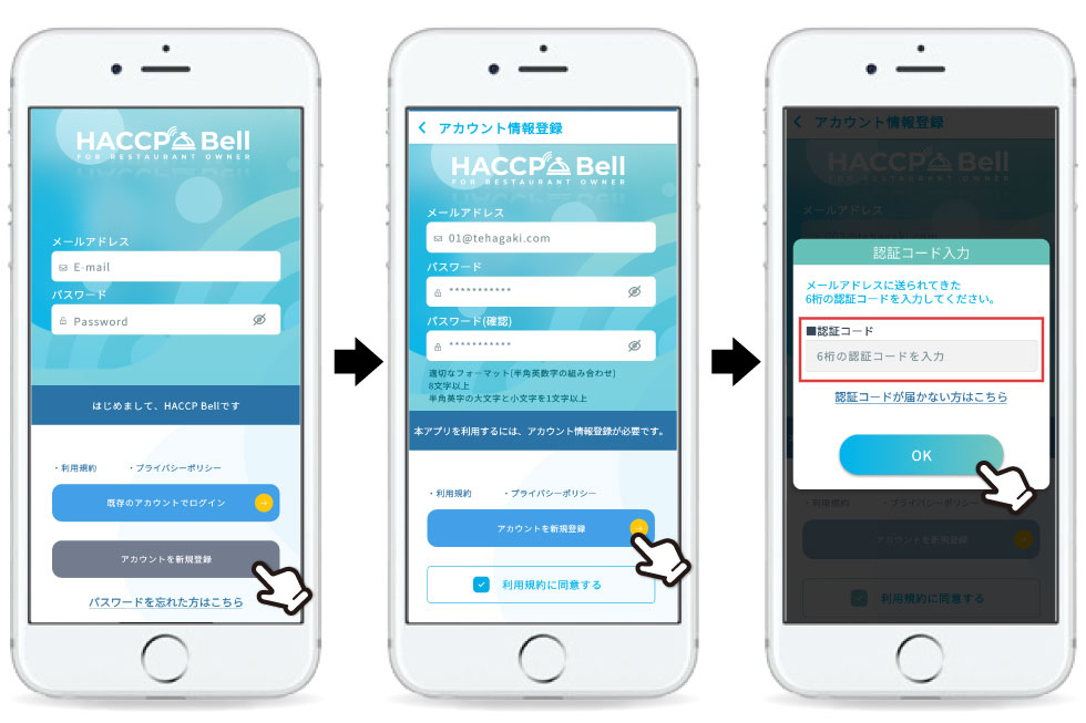 HACCP Bell(ハサップベル)の使い方はとても簡単! アプリをインストールして必要事項を記入するだけですぐ始められます。