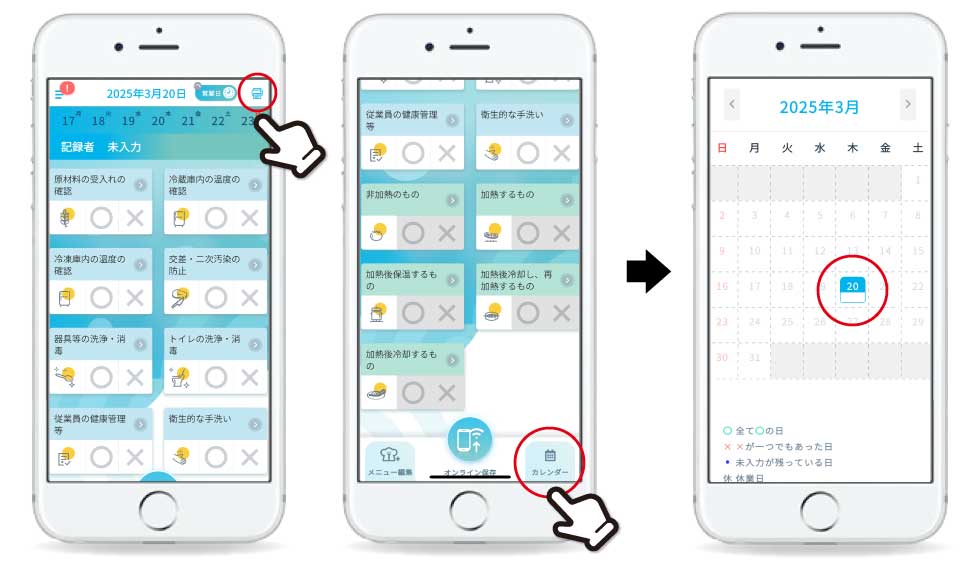 「カレンダーボタン」から、いままでのチェック記録を閲覧できます